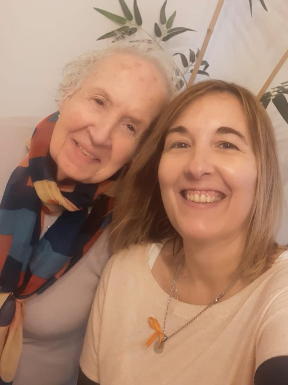 Las cintitas naranjas representan la lucha contra el cáncer ginecológico por lo que Silvina siempre lleva una con ella.