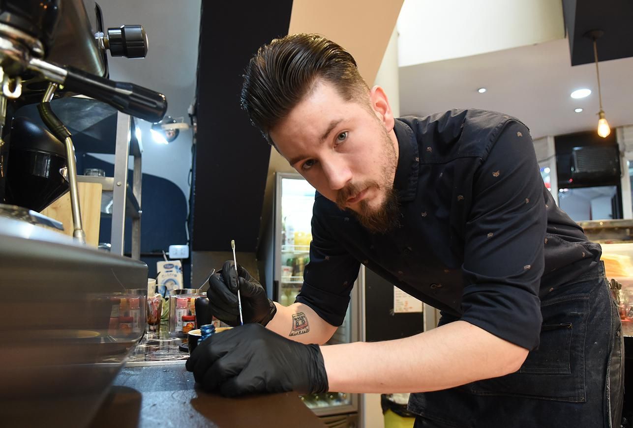 En el local ya comenzaron a promocionar los cafés alusivos a la máxima cita futbolista. "Tenemos algunos diseños con colores, como el logo, la copa y la bandera argentina. Hasta nos pidieron que confeccionemos a Messi, es todo improvisación", reveló el barista Alejandro y, entre risas, también admitió que los vecinos fanáticos hasta le piden escudos de equipos, como Los Andes.