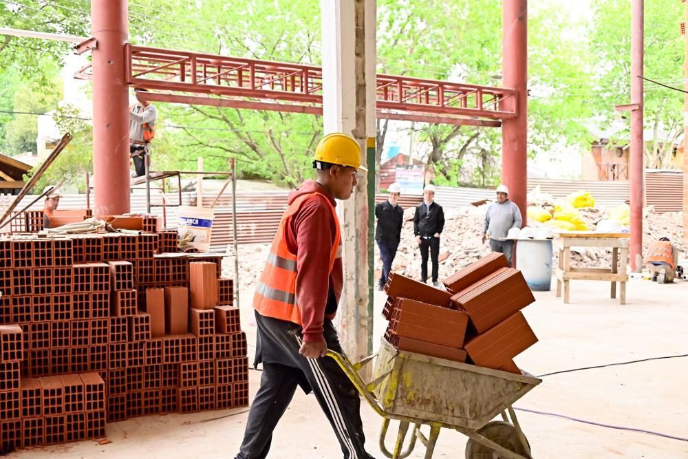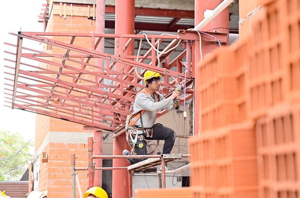 Actualmente, las tareas que desarrollan en el lugar consisten en el picado y retiro de contrapiso y piso en planta alta, construcción de cajas de ascensores, elevación de muros divisorios y de cierre, soldaduras de vigas reticuladas, ejecución de cierre perimetral, instalación sanitaria y la ejecución de una estructura metálica resistente.
