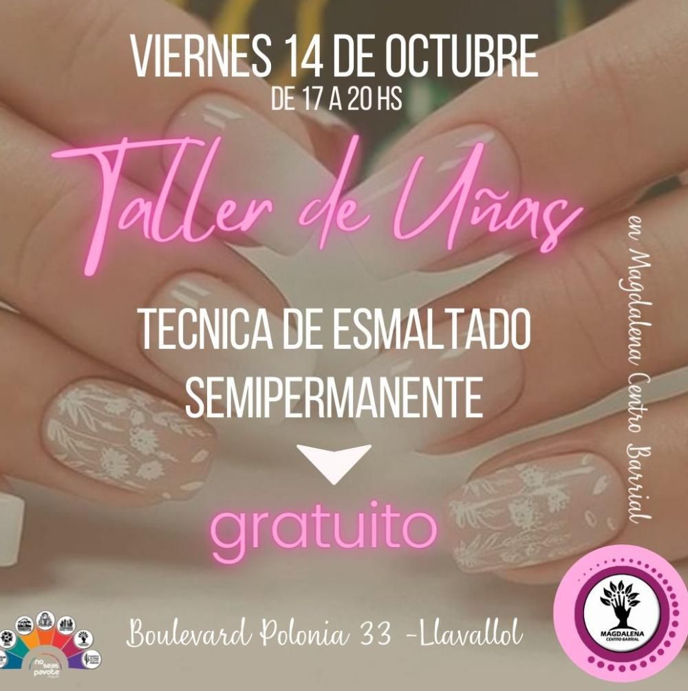 Siempre con el objetivo de colaborar con los sectores más vulnerados, la ONG No seas Pavote que nuclea varios espacios en Lomas ofrece un taller gratuito de uñas con salida laboral que se dictará este viernes en el Centro Barrial Magdalena de Llavallol.