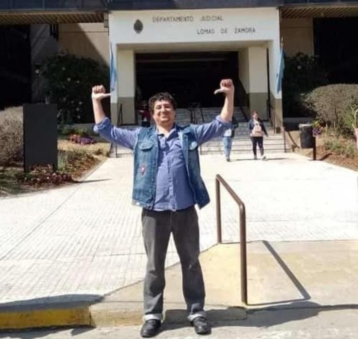 En una de las imágenes se lo ve con un gesto triunfal en la puerta del edificio de los Tribunales de Lomas, en la entrada de la calle Larroque. Otra foto lo muestra sonriente en una selfie tomada en el interior de un auto, apenas abandonó el penal.
