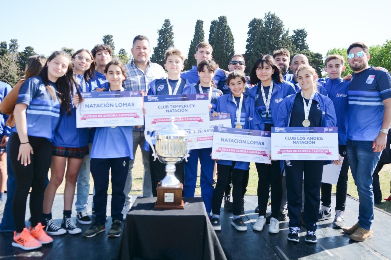 Con un delegación de 336 chicos y chicas de distintas edades, Lomas gritó campeón logrando 41 medallas de oro, 17 de plata y 8 de bronce en la competencia desarrollada en Mar del Plata. "Esto es fruto de la dedicación y el esfuerzo de cada uno de los deportistas, pero también de una inédita inversión en materia de infraestructura para que cada uno de los atletas locales contara con las instalaciones necesarias para poder progresar. Hay campeones de distintos clubes a los que el Municipio también acompañó porque esto es una comunidad que cree en la inclusión deportiva y en los pibes y pibas", remarcó Insaurralde durante su discurso en el Parque de Lomas.