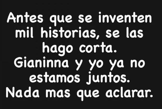 "Antes que se inventen mil historias, se las hago corta. Gianinna y yo ya no estamos juntos. Nada más que aclarar", escribió Osvaldo sin dar mayores precisiones.