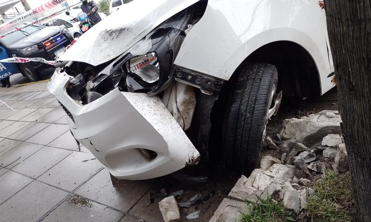 El accidente ocurrió pasadas las 12 del mediodía en la avenida Hipólito Yrigoyen al 10.600. Un Ford Ka blanco perdió el control, chocó con un poste de luz y terminó subido a la vereda del hipermercado COTO.