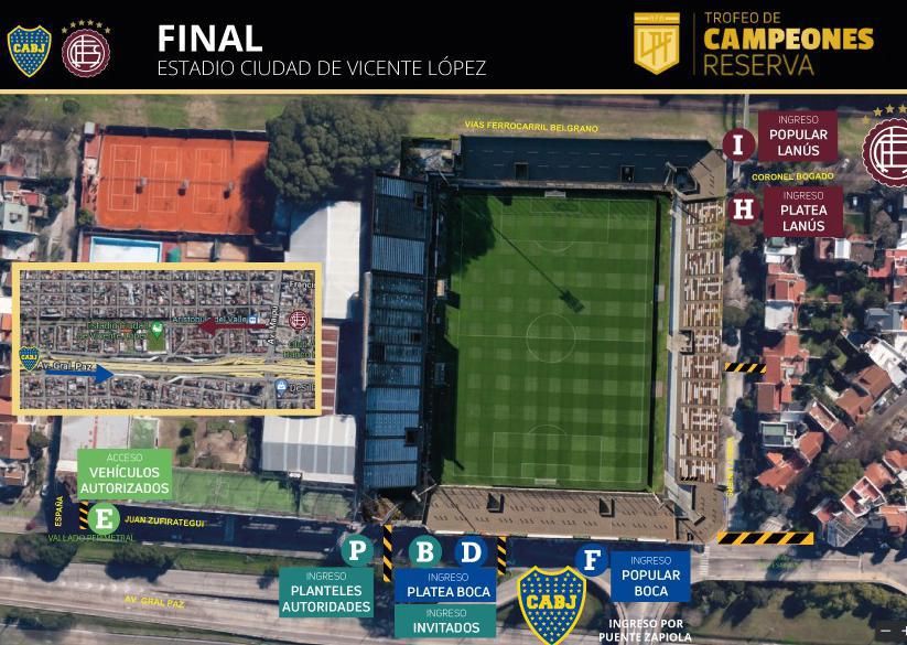-La parcialidad de Lanús deberá ingresar por la calle Bogado desde Av. Maipú.