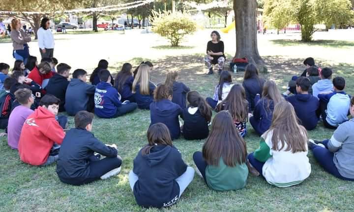 La lomense, en compañía de Maribel García (museóloga de la localidad de Hinojo) y Sasa Guadalupe (quien vive en Francia) narraron cuentos e historias para chicos y chicas de jardines maternales e iniciales y escuelas primarias y secundarias que se acercaron hasta el espacio público para disfrutar de jornadas llenas de cultura.