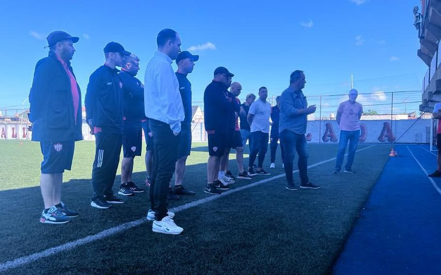 La presentación del técnico con la presencia del vicepresidente Alejandro Freije y autoridades del Club. "Me convenció la historia del Club. Encontrarme con una Comisión y un Presidente -Osvaldo Fernández- que quieren lograr cosas; pelear por un ascenso", había expresado el viernes último en declaraciones a la prensa.