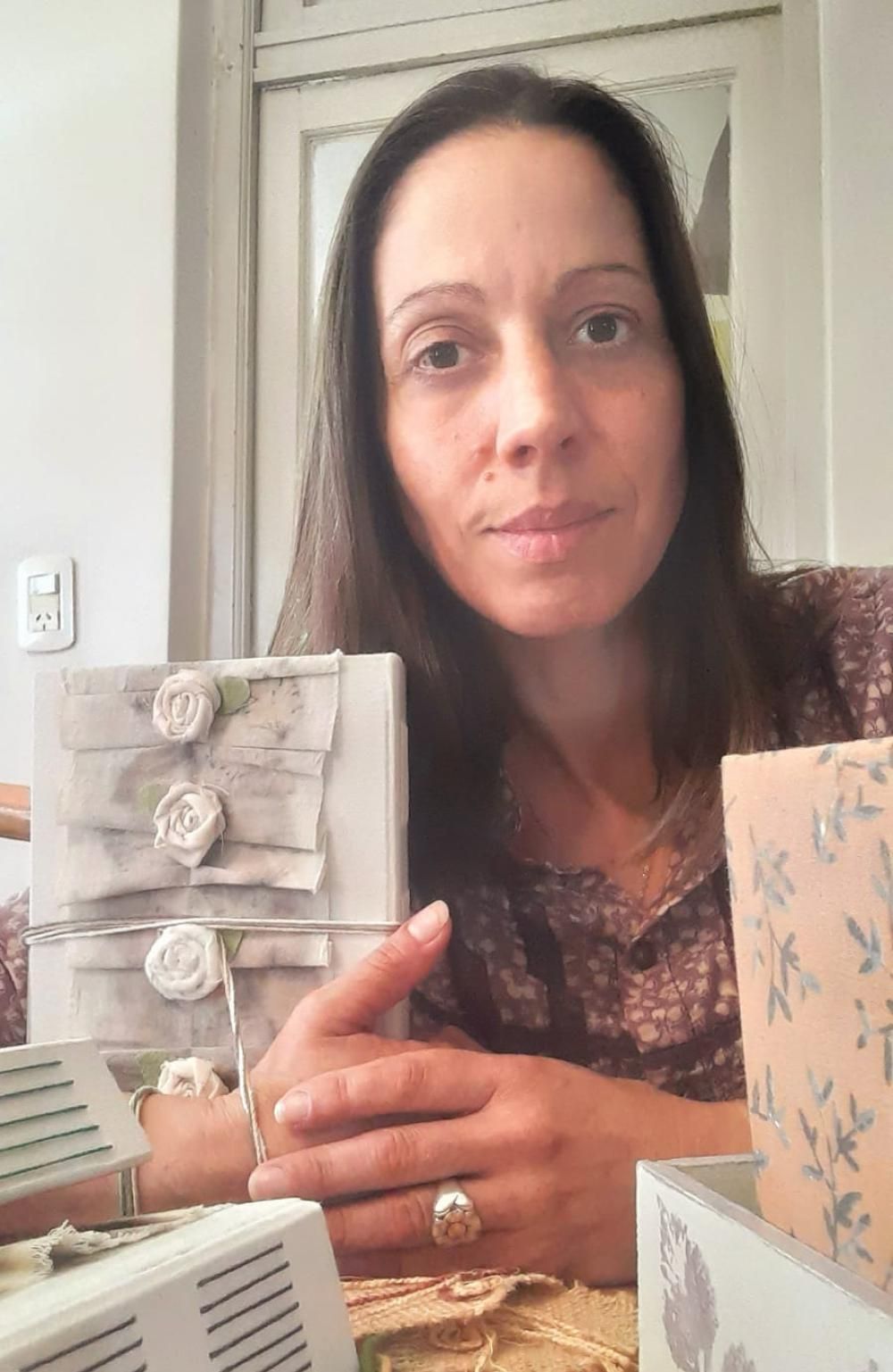 Como no podía ir a eventos a sacar fotos, se me ocurrió hacer y vender los álbumes para las fotos. Le pedí a mi cuñada, que había estudiado encuadernación, que me enseñe a hacerlo y así fue cómo aprendí sobre papeles, gramajes, de telas y de cartones.