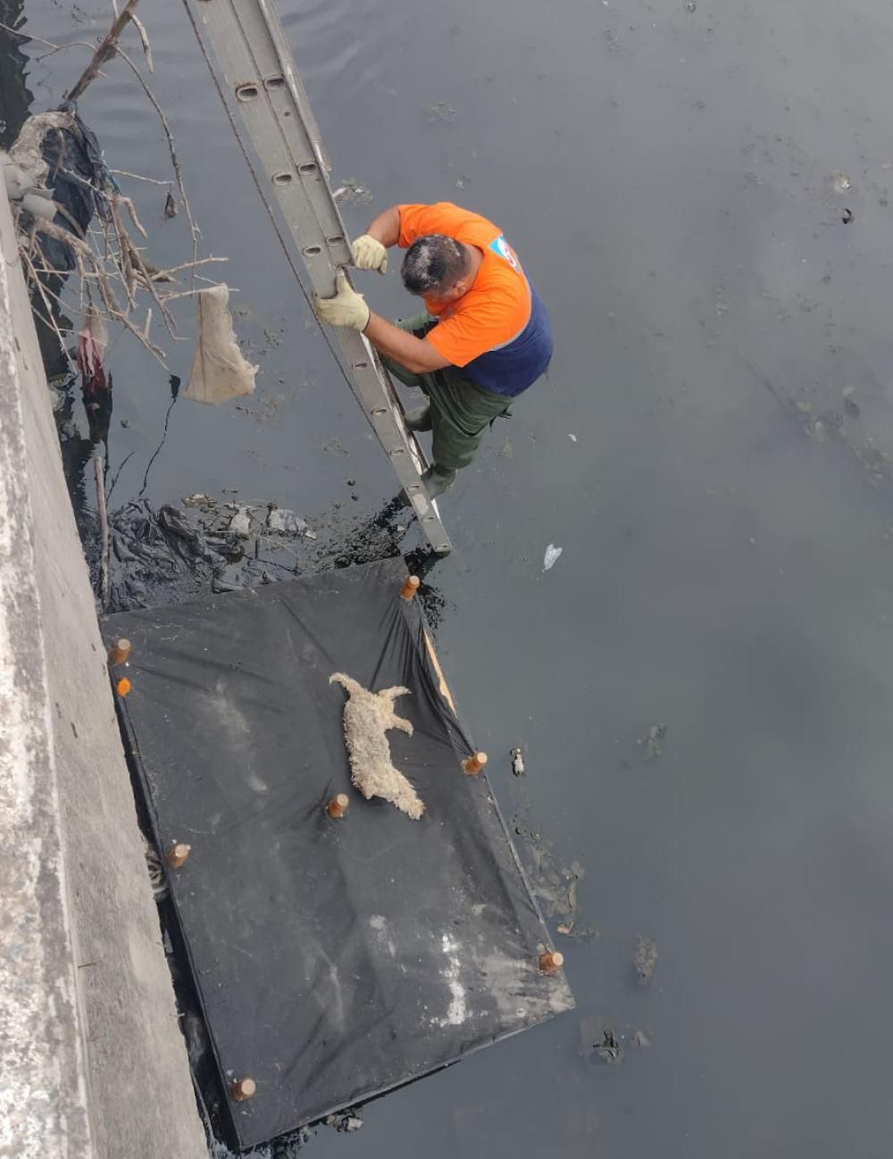 Personal de Defensa Civil de Lomas de Zamora rescató a un perro que se había caído al arroyo en la localidad de Ingeniero Budge.