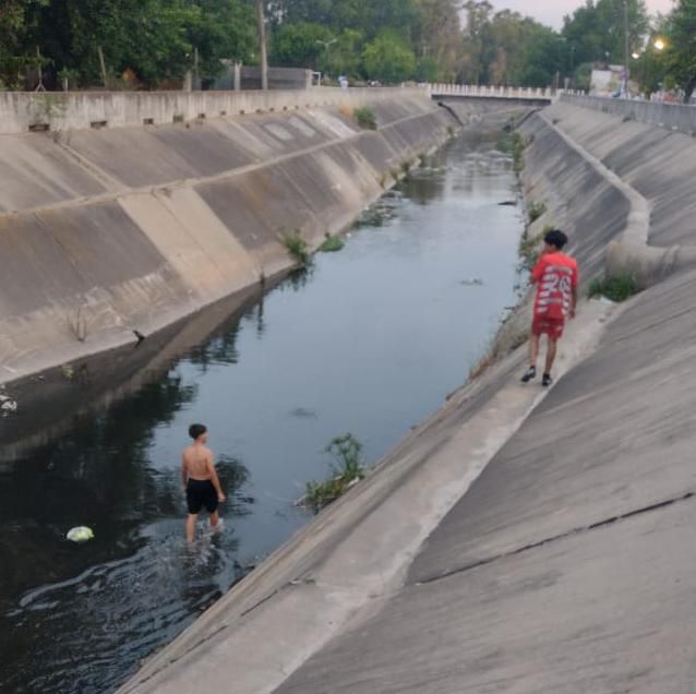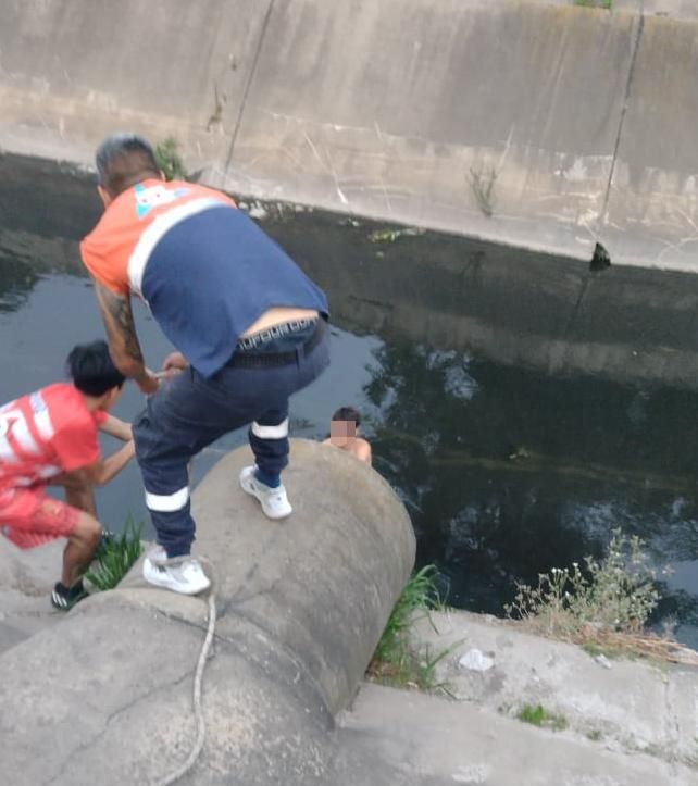Un grupo de adolescentes jugaba al fútbol y se les fue el balón al agua. Uno de ellos bajó y luego no pudo salir. Defensa Civil lo ayudó.