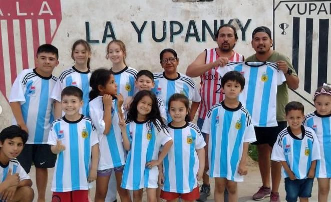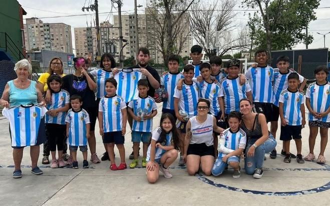 A través del Municipio, acercan las casacas albicelestes a los chicos en medio de la fiebre mundialista. "La emoción y felicidad de los pibes es hermosa", destacaron.