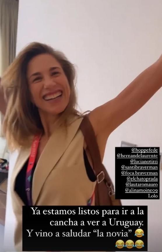 "Ya estamos listos para ir a la cancha a ver a Uruguay y vino a saludar 'la novia'", expresó Marcelo, junto a un montón de emojis que lloran de risa, al pie del video de Alina con su grupo, preparados para ir a ver el partido.