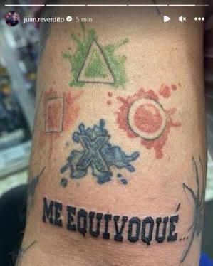 Ante la repercusión, mayoritariamente con burlas por lo reiterada de su respuesta, Juan Reverdito decidió traslada esa frase a su piel. Sí, se tatuó el "me equivoqué".