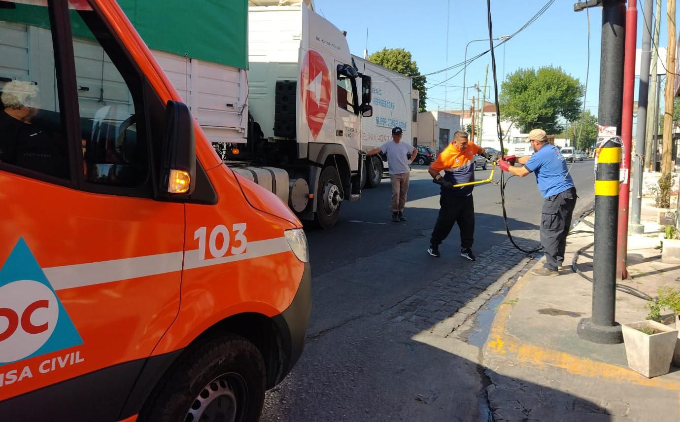 Un camión arrastró cables, chocó con un semáforo y dañó un cartel en la localidad de Llavallol. En el lugar intervino Defensa Civil de Lomas de Zamora.