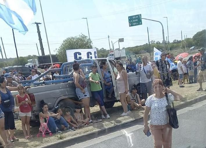 La Policía Bonaerense permanece en el lugar de la protesta a modo de prevención, debido a la posible llegada de más manifestantes.