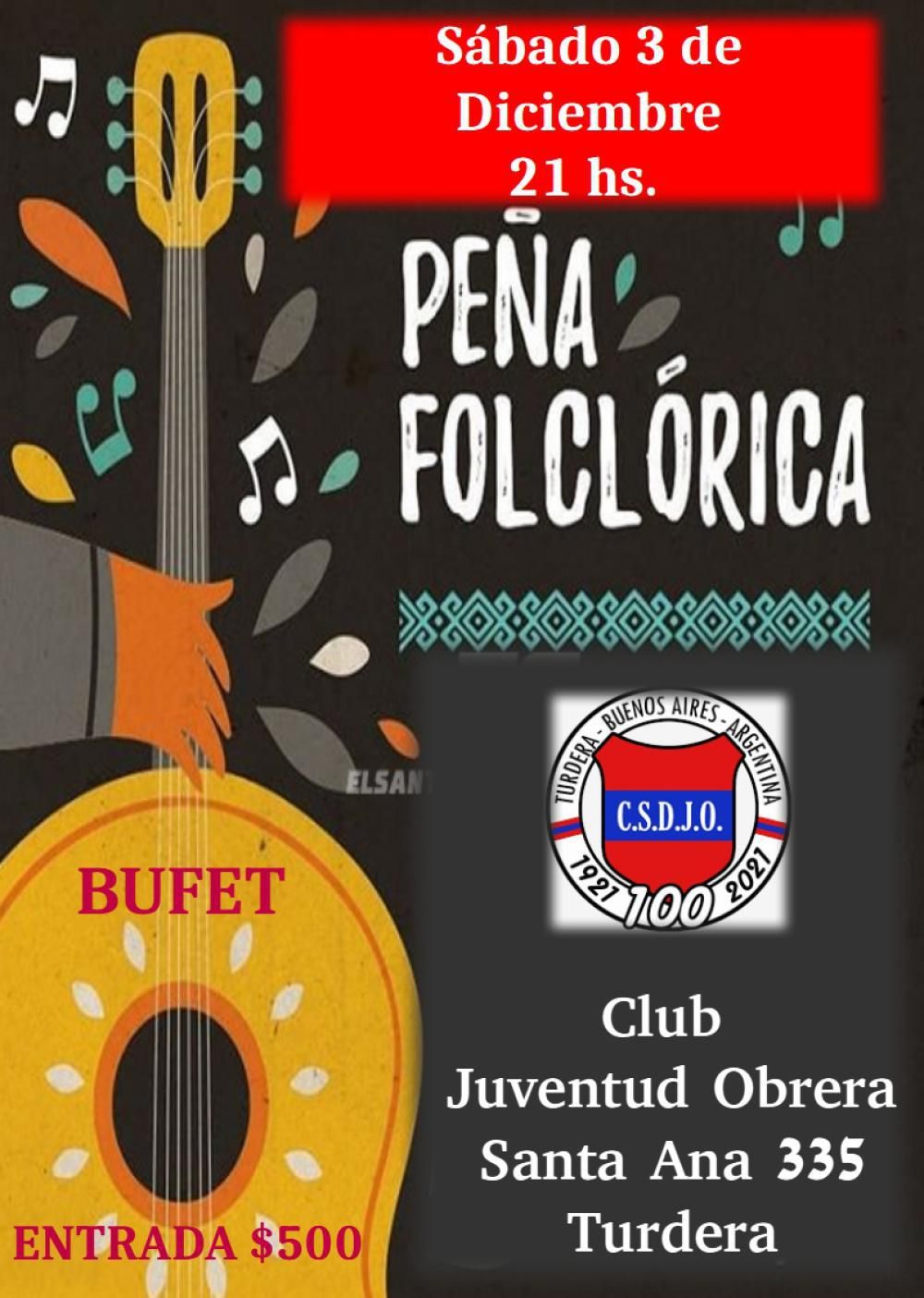El Club Juventud Obrera de Turdera será sede de una peña folklórica este sábado a partir de las 21. El evento servirá para empezar a despedir el 2022, en compañía de los vecinos que siempre apoyaron a la institución en cada actividad social y cultural.