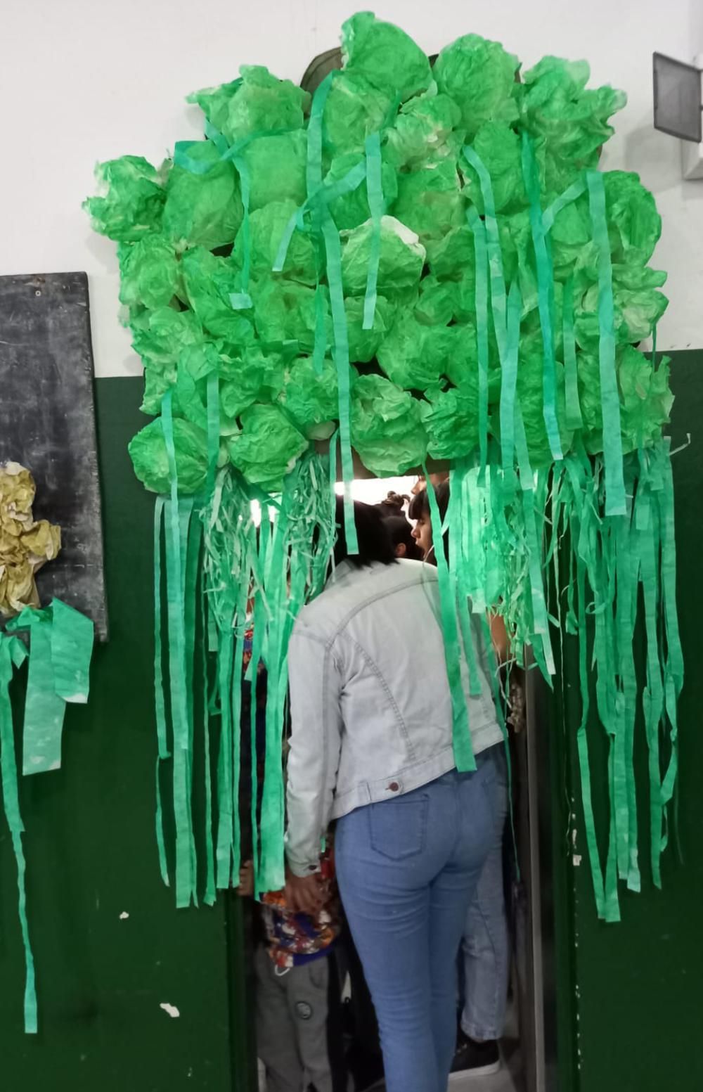 La reutilización del material en desuso fue fundamental para el armado de dicha muestra que además se basó en la leyenda del Calafate (un cuento tehuelche) en la que trabajaron los chicos del turno mañana.