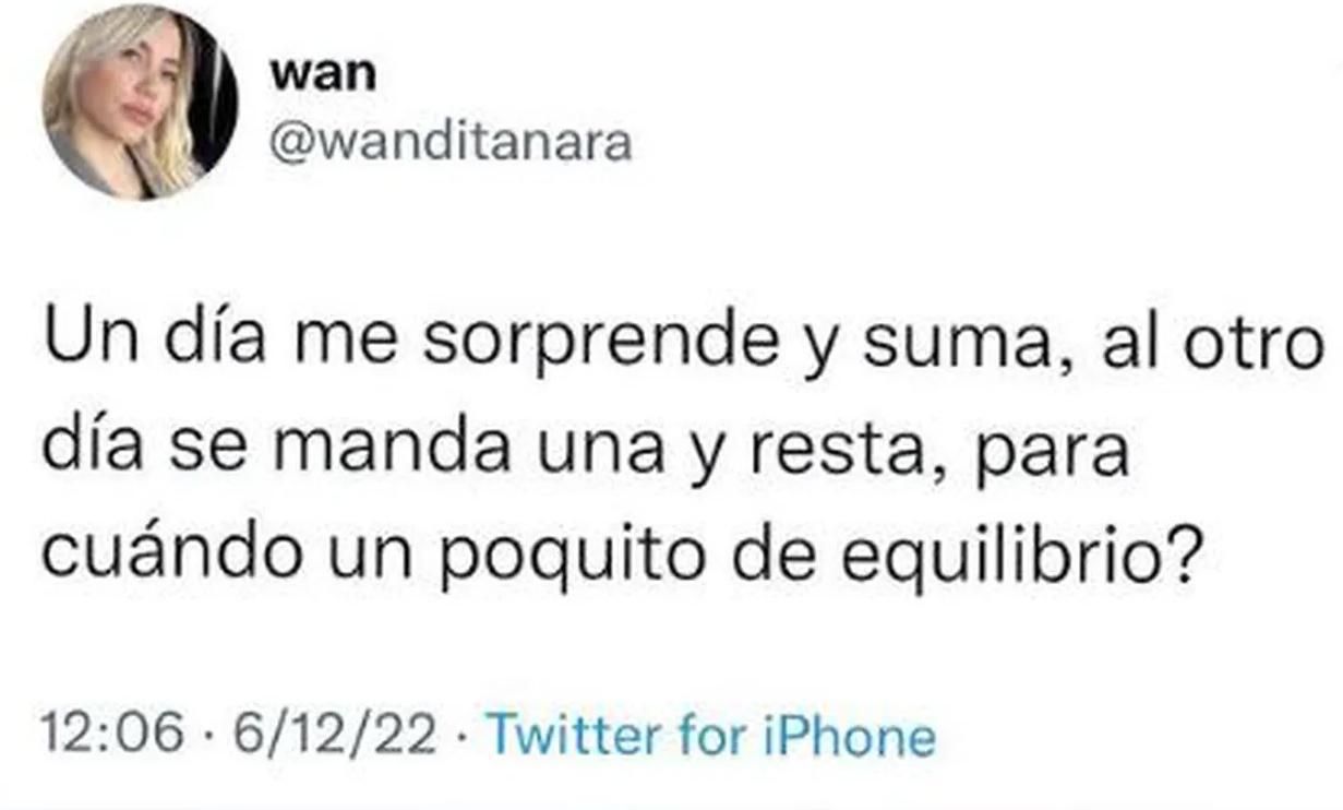En primer momento, Wanda sorprendió en su cuenta de Twitter con un mensaje que no se sabía si era para el cantante L-Gante, con quien habría mantenido un romance durante su estadía en Argentina, o para el delantero argentino.