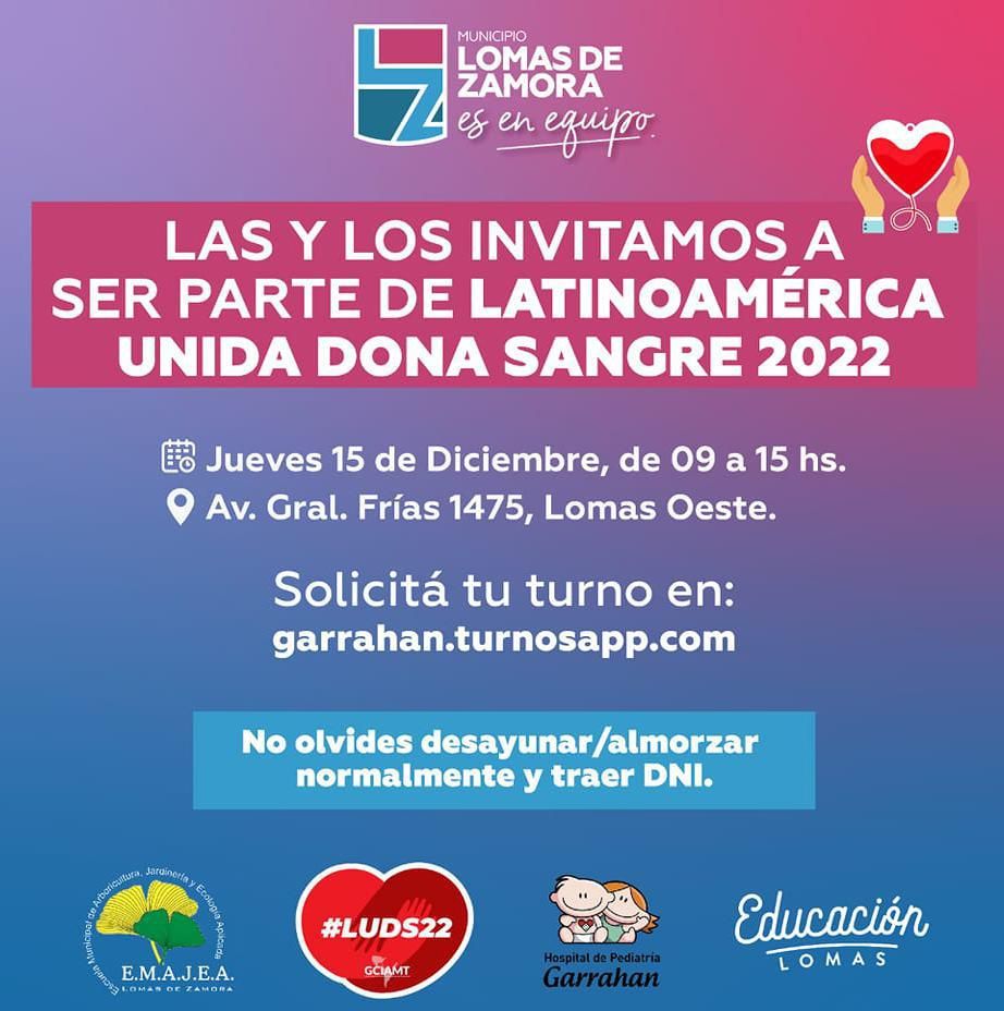 "La sangre no tiene jurisdicción y es necesario resaltar que la participación de Lomas en esta iniciativa es muy importante porque cada día se afianza más esta acción voluntaria y habitual de donar sangre y los que trabajamos en la zona lo sabemos. Hay que valorar que se sume nuestro partido a esta convocatoria de Latinoamérica Unida Dona Sangre", resaltó Balmaceda que aseguró como promotora del Garrahan que el 10% de la sangre que llega al hospital de donaciones externas son de Lomas.