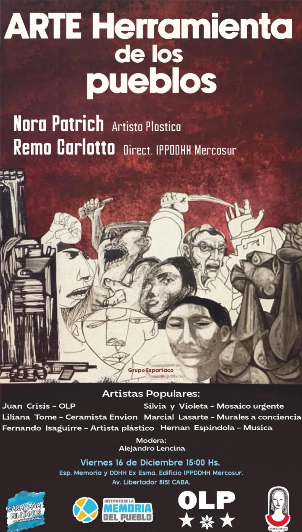 Los artistas lomenses Fernando Izaguirre y Marcial Lazarte fueron invitados a ser parte de un evento gratuito llamado "Arte, herramienta de los pueblos", el cual se llevará a cabo hoy en el Espacio Memoria y Derechos Humanos Ex ESMA (Avenida Libertador 8151) en el que se hablará sobre los hechos ocurridos en la Dictadura Militar que ocurrió en el país entre 1976 y 1983.
