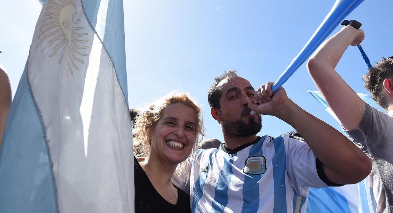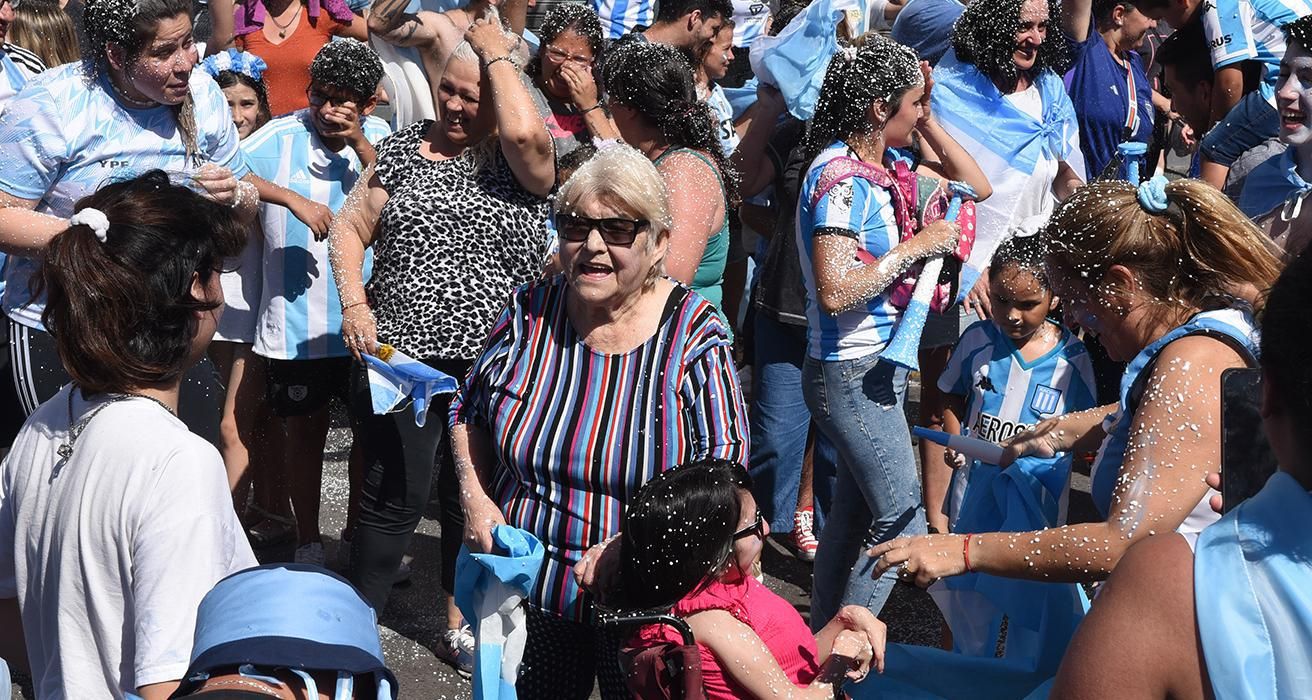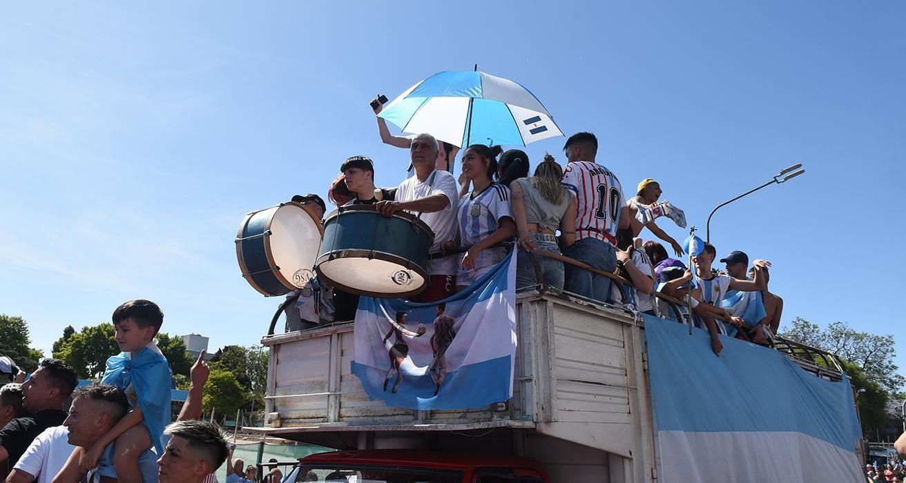 Arriba de camiones, autos, bocinazos, con heladeritas, gorros, disfraces y todo el folklore popular, presente en las calles.