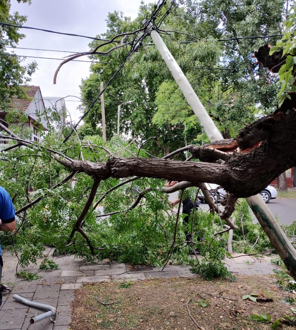 Un poste de luz fue derribado y un árbol resultó dañado por un camión en la localidad de Temperley. Defensa Civil de Lomas de Zamora intervino en el lugar.