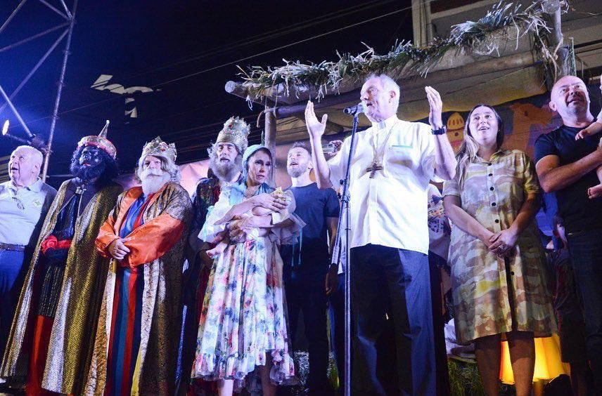 A los costados de la Avenida Yrigoyen se congregó otra multitud para esperar a los Reyes que, una vez que llegaron a la Plaza Grigera, se subieron a un escenario montado en la intersección con Sáenz. "Gracias por estar nuevamente esta noche con el sueño de los niños. El niño Jesús fue el primero que recibió los regalos de los Reyes y hoy vamos a pedirle al niño que nos regale para nuestra Patria, para Argentina y para las familias la unidad y la paz", señaló el obispo de Lomas, monseñor Jorge Lugones, quien llevó adelante las bendiciones.