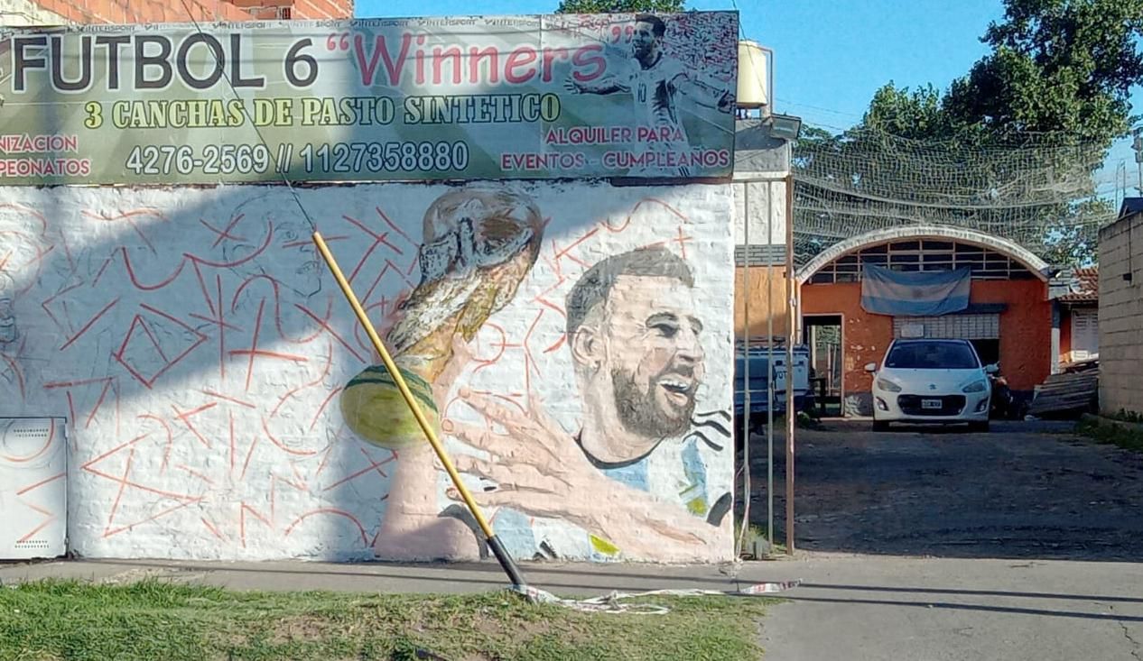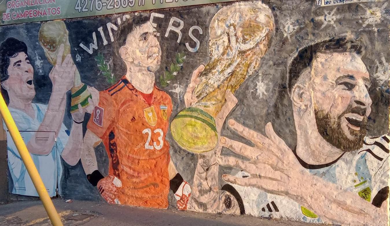 El lomense Leandro Ochipinti (34) es un amante del arte y del fútbol, a tal punto que decidió mezclar sus dos pasiones y crear un mural en el que se puede ver a Diego Maradona y Lionel Messi levantando la copa del mundo, sumado a la figura de Emiliano "Dibu" Martínez, que fue "clave" para que Argentina logre ser campeón en Qatar 2022.
