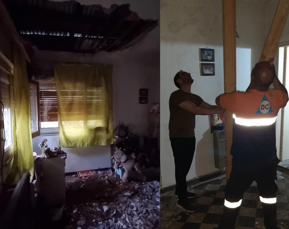 Finalizada las tareas de desmonte, realizaron el apuntalamiento del techo en la zona afectada para resguardar preventivamente a las personas que habitan la vivienda. Asimismo, personal del Municipio se hizo cargo de la limpieza y remoción de la mampostería.