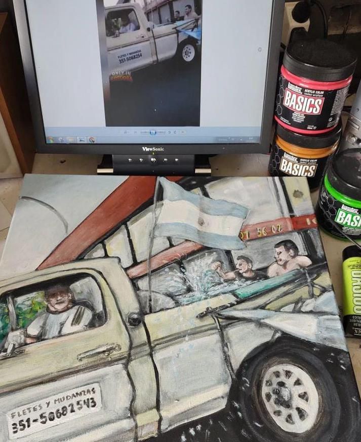 "No existen las vacaciones en el arte. Estoy todo el día pensando y observando qué puedo pintar, es por eso que lanzo esta convocatoria para todos los que quieran ser partícipes de mi trabajo", empezó a explicar Luciano Mogni, quien se destaca por pintar imágenes bizarras que saca de Google Maps, del trabajo en conjunto con la gente de The Walking Conurban o de los propios aportes que hacen los vecinos. Sus cuadros, hechos de acrílico sobre tabla (con una medida 30x40) ideales para colgar en una pared.