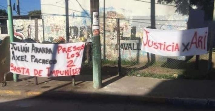 Decenas de personas se reunieron para acompañar a la familia de la víctima llevando fotos, banderas y pancartas con la misma consigna: "Justicia por Ari". Además, exhibieron públicamente los nombres de los dos involucrados en el asesinato.