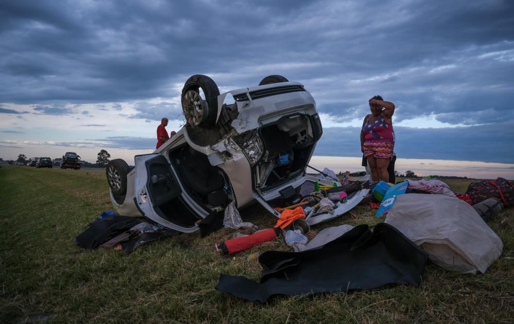 En cuando al conductor de Lomas, su auto quedó cruzado sobre la calzada con importantes daños: vidrios rotos, el frente arrancado, el capot y el techo severamente abollados y ruedas salidas de su lugar.