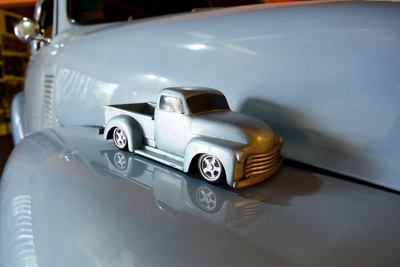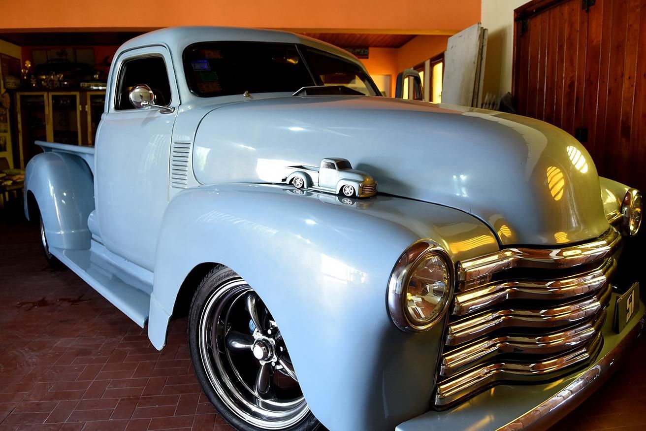 La historia del color que cubre a esta Chevrolet, modelo "boca de sapo", modificada, de 1951 merece un punto a parte. "El color de la chata es similar hecho al de una maqueta que me dejó mi papá semanas antes de fallecer. Cuando tenía la camioneta bastante avanzada, iba a ser de gris plata y él tenía la idea de un color parecido al de un Alfa Romeo", explicó Fabián.