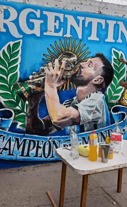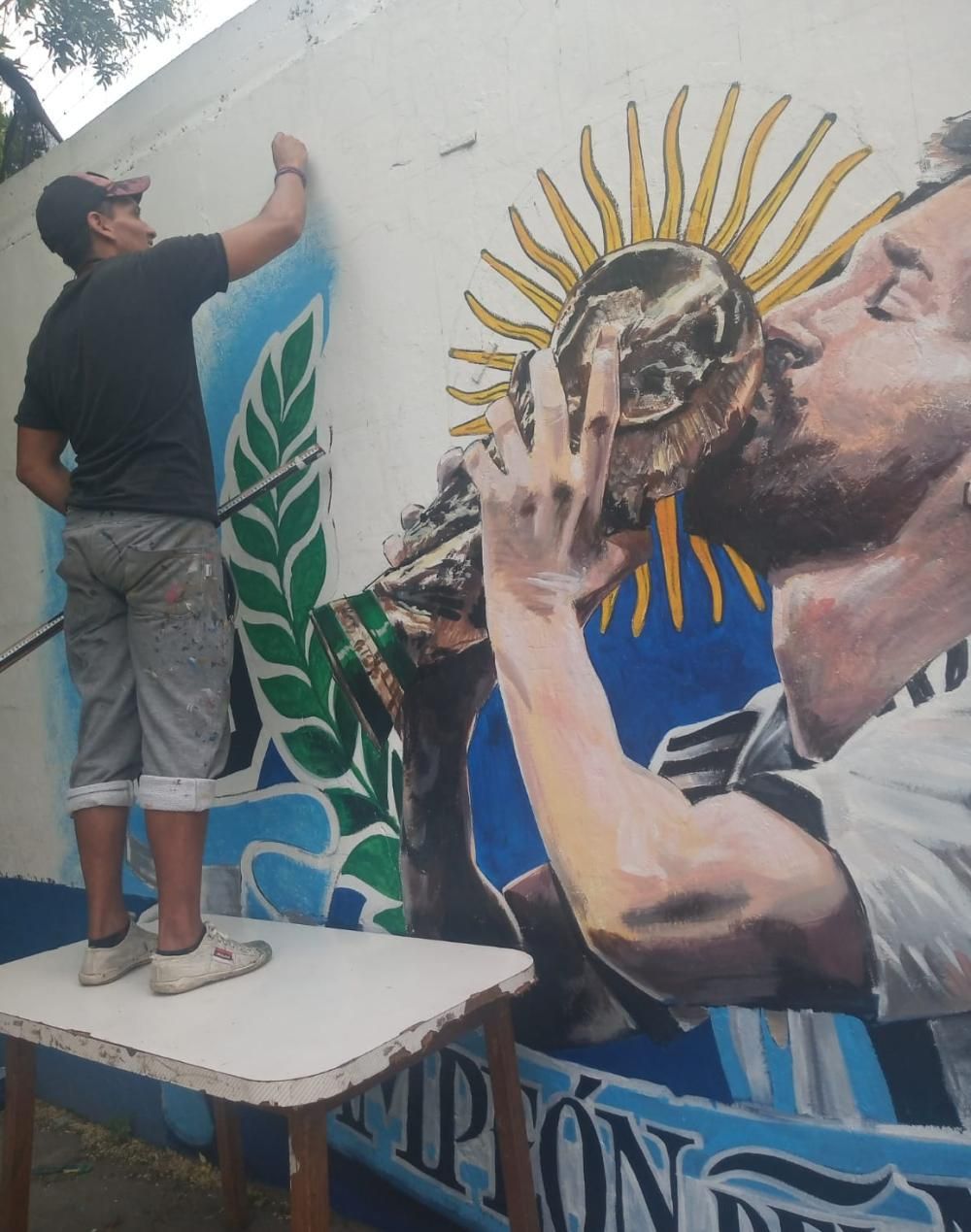 Esto comenzó en 2014 cuando no se pudo dar el campeonato en Brasil. Había prometido que iba hacer un mural si ganábamos, y cuando llegamos a la final en este Mundial de Qatar, recuerdo que cuando Francia nos empató pensé que otra vez me iba a quedar sin cumplir la promesa, pero gracias al de arriba o al Diego se pudo dar.