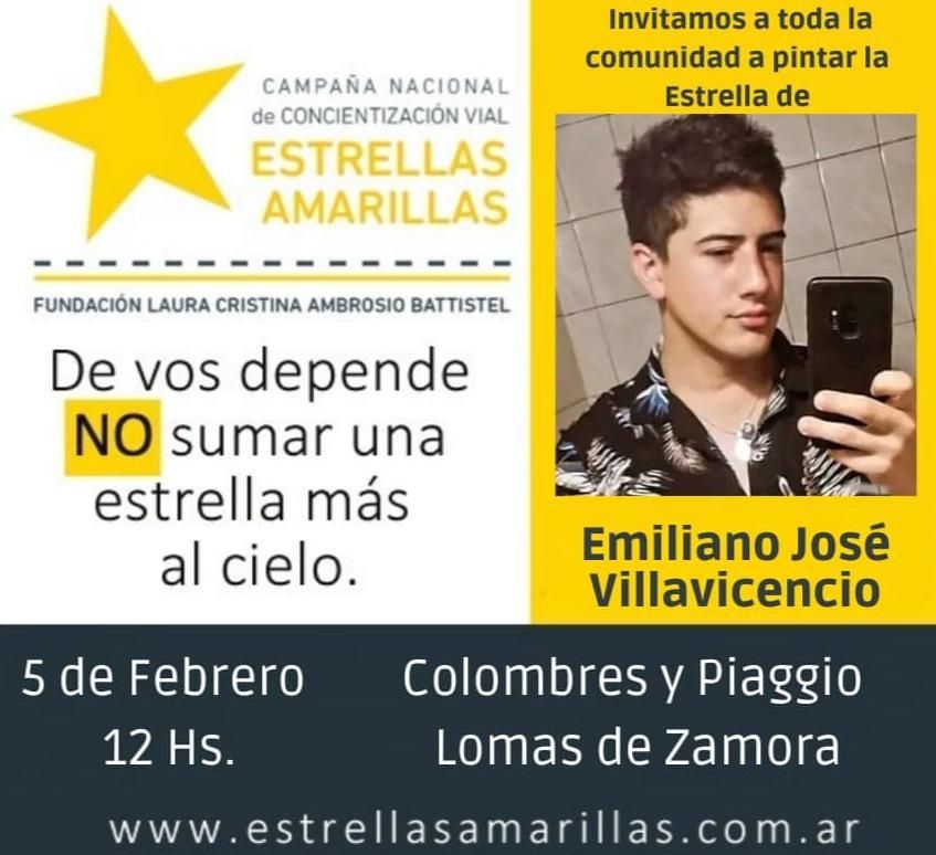 Este fin de semana pintarán una estrella amarilla en memoria de Emiliano Villavicencio, el joven de 26 años que fue atropellado por un colectivo de la línea 338 que lo arrolló tras cruzar en rojo un semáforo en Lomas de Zamora.