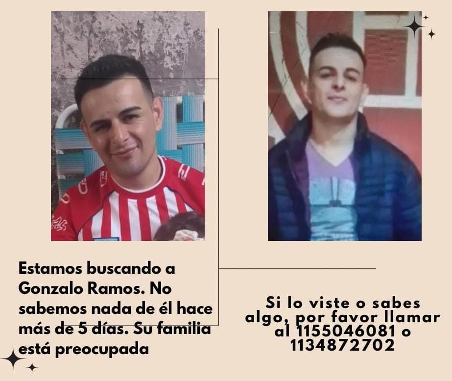 Por cualquier información sobre el paradero de Gonzalo, comunicarse a los teléfonos 1155046081 y 1134872702.