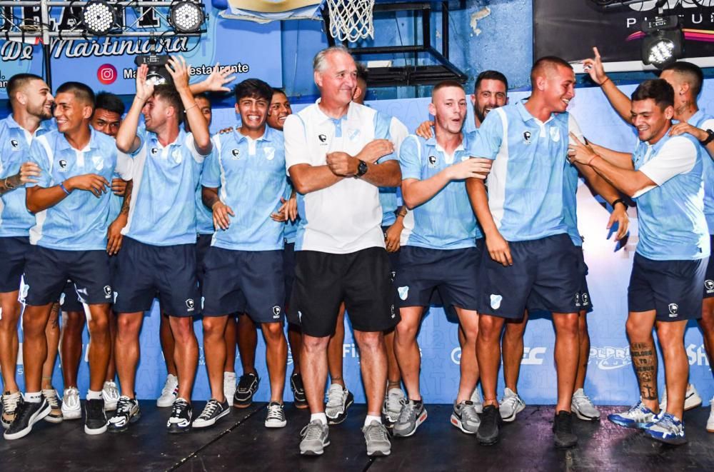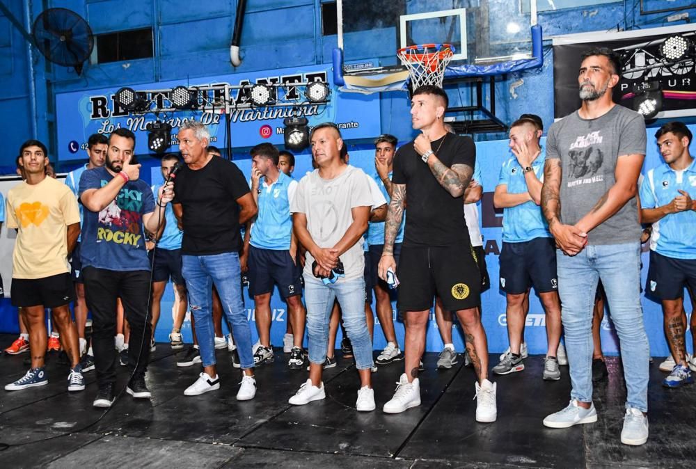 Sobre el final, la frutilla del postre: la presentación de las nuevas camisetas. Y los que las entregaron fueron cuatro referentes del club: Ariel Rojas (hizo el gol del ascenso a la Primera Nacional en 2014), Diego Katip, Hernán Orellana y Pablo Campodónico, héroes del ascenso a la B Nacional del 99, y el ídolo Federico Crivelli. Ellos se la dieron a López, Lucas Baldunciel, Nico Demartini (recibió la celeste), Matías Castro y Lautaro Maldonado. Así, de esta manera, se cerró un lindo festejo en el microestadio Palo Metz.