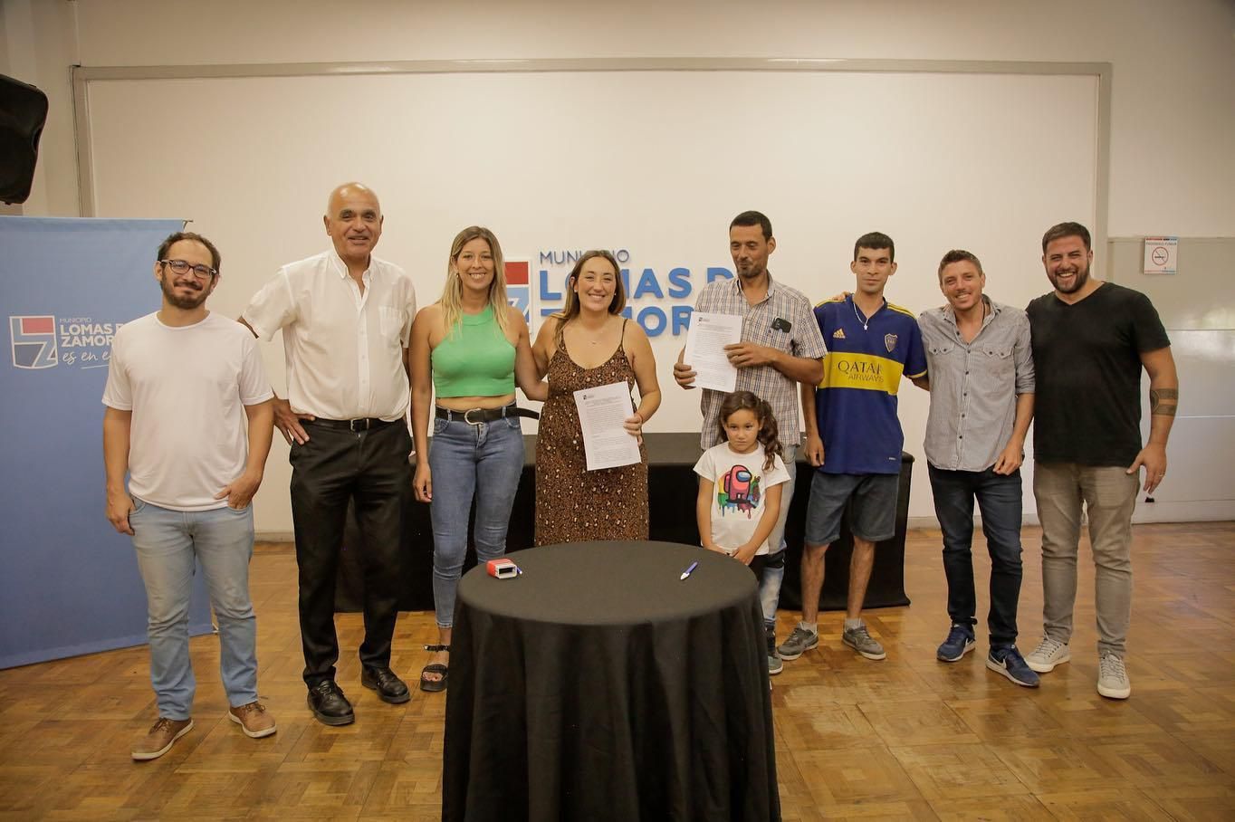 El encuentro se llevó a cabo en el Salón Eva Perón del Palacio Municipal con la presencia de la intendenta Marina Lesci; el subsecretario de Tierras, Gabriel Giurliddo; el subsecretario de Hábitat, Cristian Poczynok; y el subsecretario de Relaciones Institucionales, Santiago Abalos.