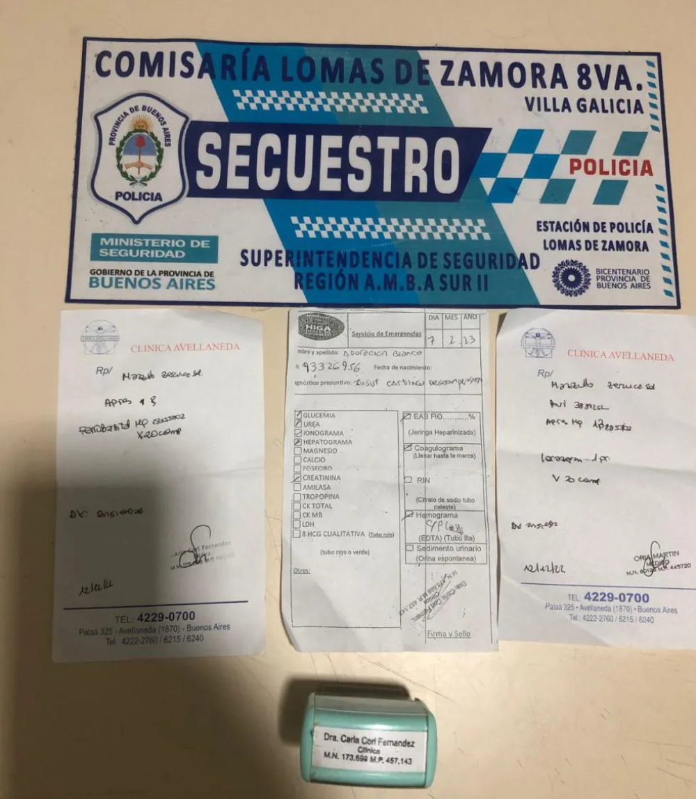 Inmediatamente los policías se identificaron y se la llevaron detenida a la Comisaría 8ª. Incautaron un sello a nombre de otra profesional y varias recetas que había hecho la falsa médica en el Hospital Gandulfo y en la Clínica Avellaneda.