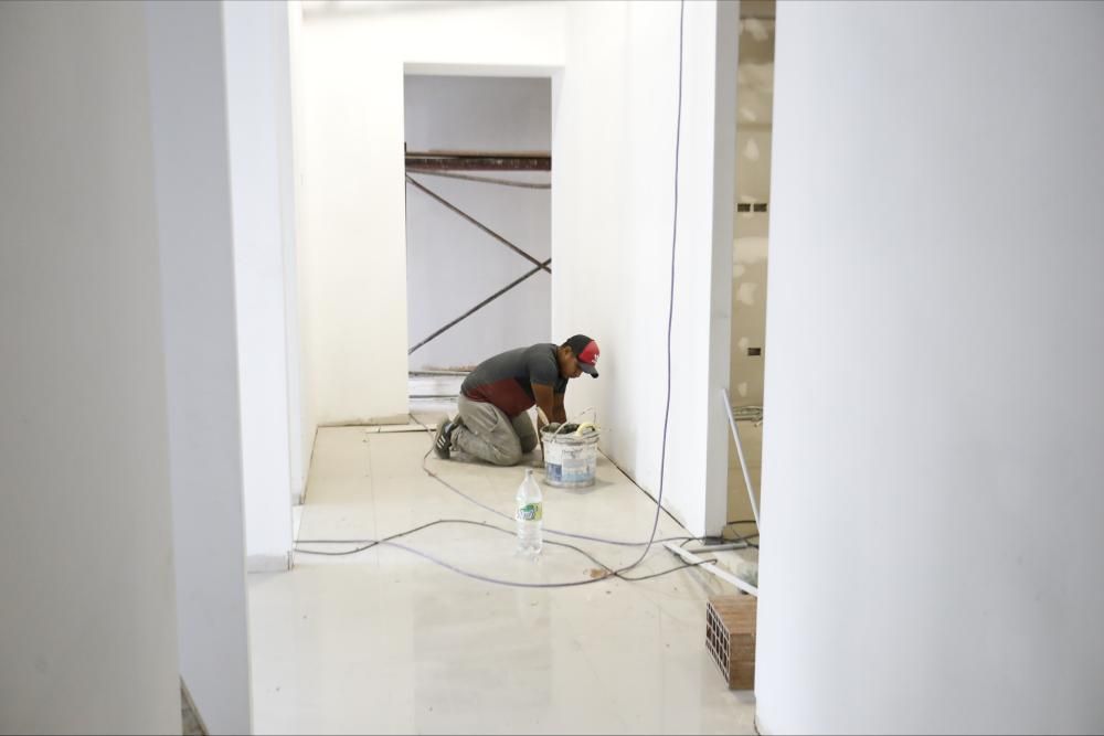 Actualmente, las cuadrillas están con la ejecución de tabiquería de durlock, mampostería de elevación, revoques, instalaciones eléctricas y tareas de albañilería. En los últimos días colocaron placas de yeso en las paredes, cerámicas en los sanitarios, pusieron la escalera de ingreso y finalizaron el montaje del curtain wall (paneles de vidrio) en la fachada. Son unas 20 personas las que trabajan en el lugar y van rotando según los rubros.