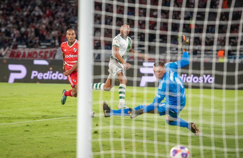 Esas dudas del equipo de Martín Demichelis fueron las que alimentaron la ilusión del Albiverde y a partir de ahí acumuló situaciones de peligro para empatarlo, la más clara en los pies de Sebastián Sosa Sánchez, que no pudo aprovechar un rebote largo de Armani y definió por encima del travesaño a los 40 minutos. Como contrapartida, cada que River atacaba era medio gol.