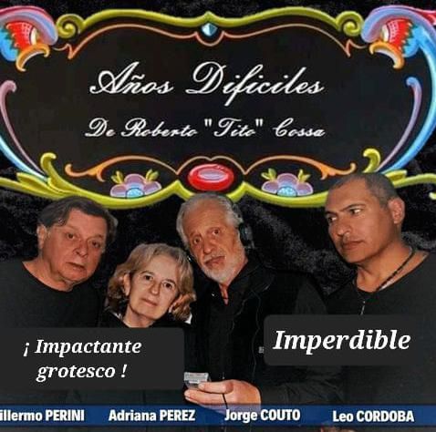 El elenco de "Años difíciles" está conformado por Jorge Couto, Guillermo Perini, Adriana Pérez y Leo Córdoba. La entrada tiene un costo de $1.800 en puerta, pero en caso de comprarla de manera anticipada (al 1131852209) se abonará $1.500.