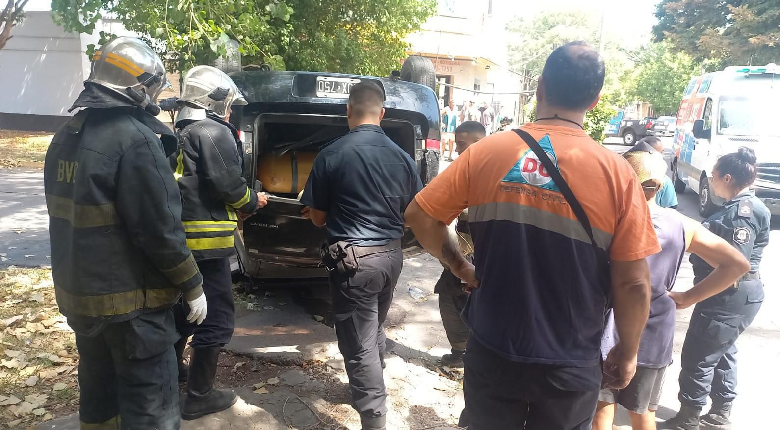 Los bomberos procedieron a dar vuelta el vehículo a fuerza humana para dejarlo en su posición normal. Acto seguido, se cortó el suministro de energía y se neutralizó el derrame de fluidos del auto arrojando cal sobre el asfalto. El coche quedó a la espera de ser removido por la grúa.