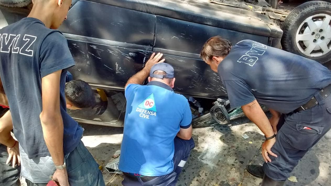 Todo ocurrió este martes por la tarde. Un Renault Sandero circulaba por la calle Aráoz y al llegar a la intersección con Roberto Payró, colisionó con un Chevrolet Meriva que cruzaba por esa esquina. El impacto desestabilizó a éste último coche, le hizo perder el control y terminó volcando sobre el asfalto.