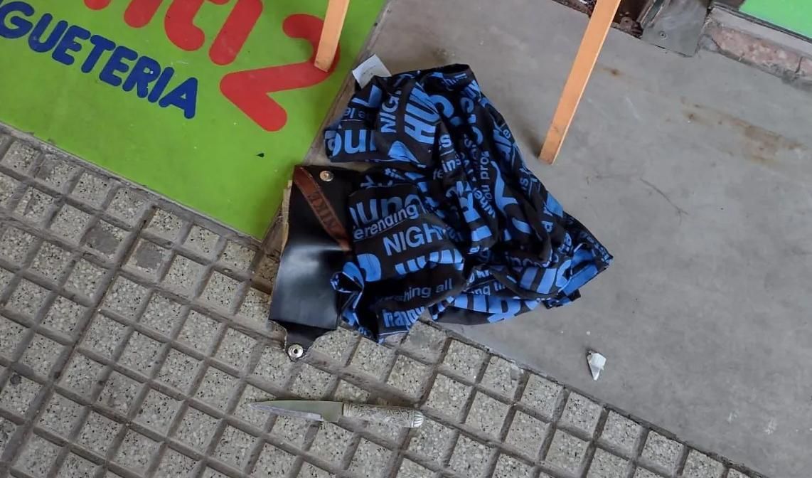 Tras un cacheo preventivo, los policías le incautaron $8.450 en efectivo, la remera que había robado en el local y un arma blanca tipo tramontina que había usado para amenazar a la empleada.