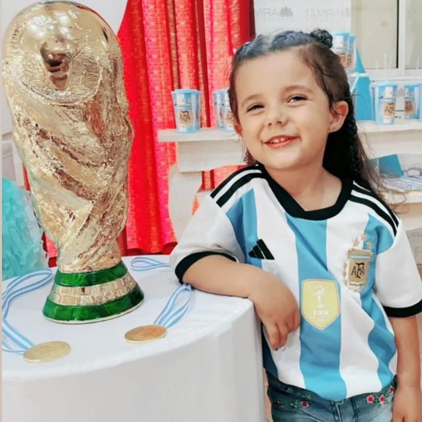 Luego repartió medallas doradas, vasos temáticos de la selección para todos sus invitados imitando al mismísimo Messi en la final del mundo porque tampoco faltó la copa con la que Isabella quiso tomarse muchas fotos.