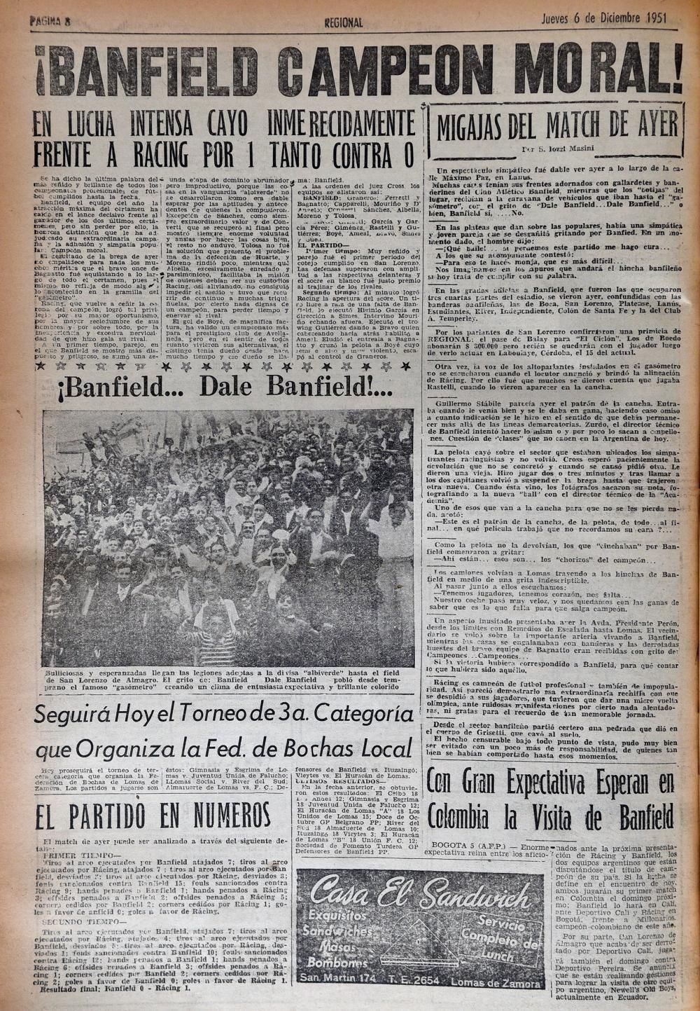 En 1951 estaba Juan Domingo Perón como presidente y Eva, su mujer, quería que ese partido lo gane Banfield porque era el equipo más humilde.