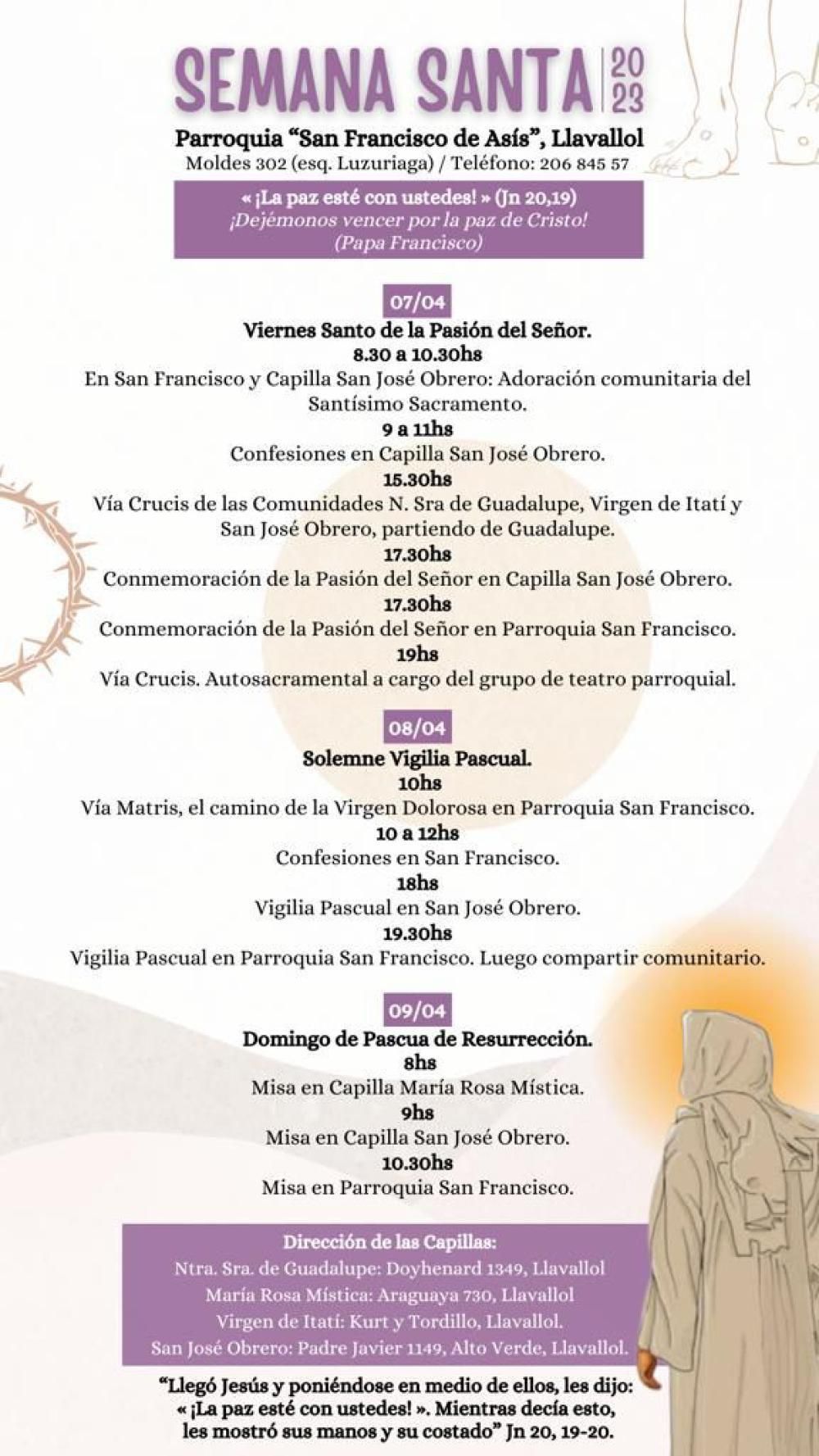 La Parroquia San Francisco de Asís de Llavallol (Moldes 302) se prepara, en conjunto con las capillas Nuestra Señora de Guadalupe, María Rosa Mística, Virgen de Itatí y San José Obrero, para la celebración de Semana Santa con una agenda repleta de actividades para la comunidad religiosa de Lomas.