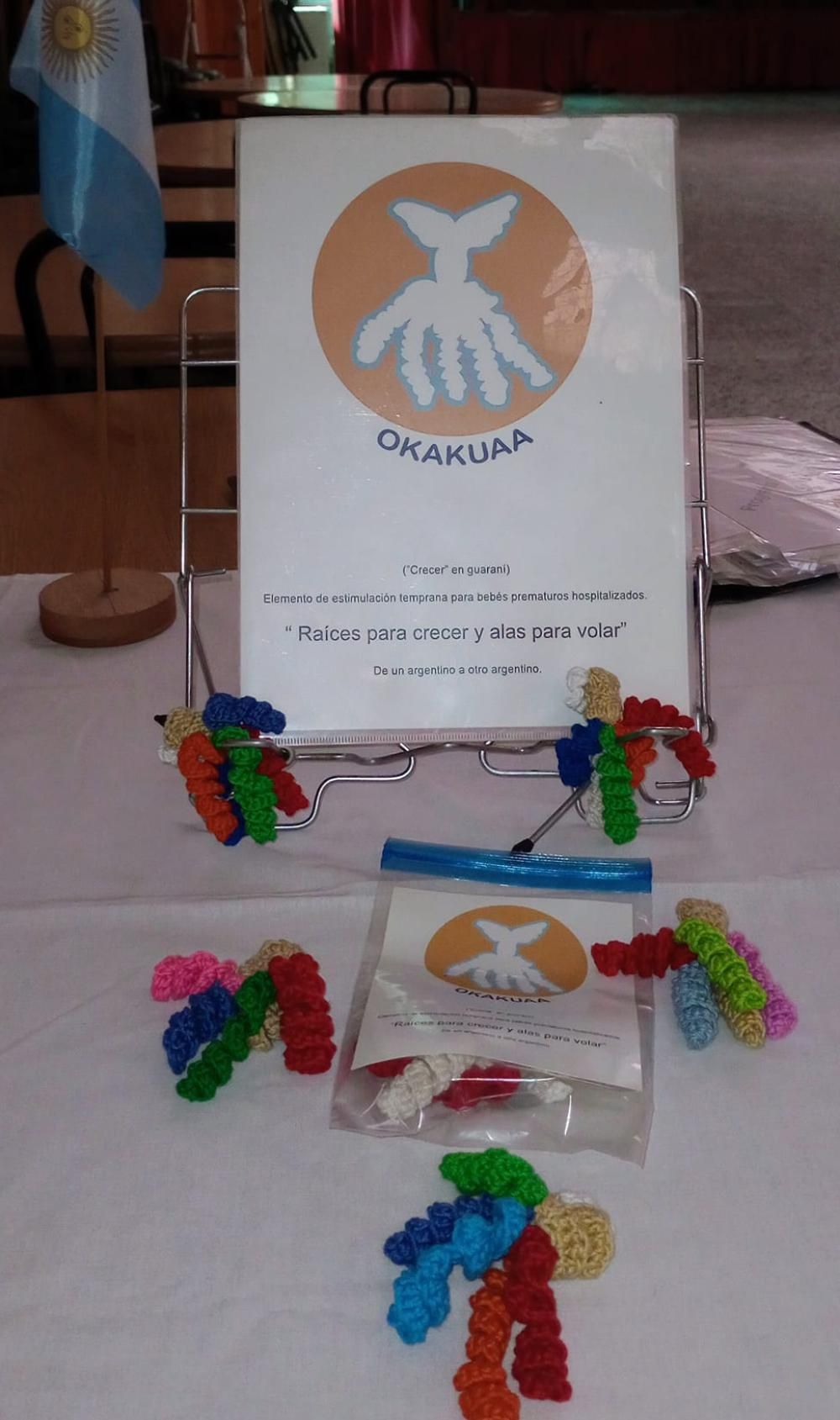 Okakuaa (significa crecer en lengua guaraní) es el nombre de la iniciativa que se dedica a producir para bebes prematuros que se encuentren hospitalizados. "Raíces para crecer y alas para volar" es el lema del proyecto. En esta ocasión todo lo que se teja será entregado al área de Neo del Gandulfo y al hospital materno infantil Oscar Alende.