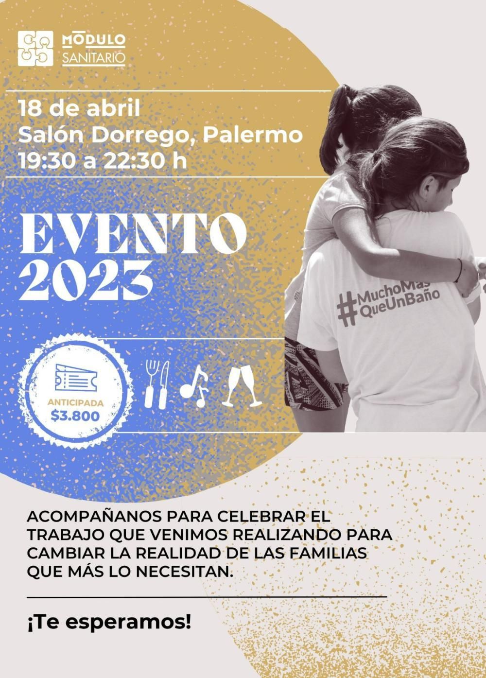 El evento se realizará en el Salón Dorrego de Palermo, de 19.30 a 22.30, y tendrá la finalidad de juntar dinero que será usado por Módulo Sanitario para la construcción de baños en distintos barrios del conurbano.